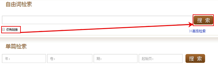 2.进入系统后,点击普通检索,进入普通检索页面,根据页面提示在自词检索框里输入你要检索的内容点的检索表达式,击下可以勾选限定要检索的结果是否有链接,检点击索按钮即可;你要进行单篇精确检索,可以在单片检索框内输入相应的选项,点击进行检索。